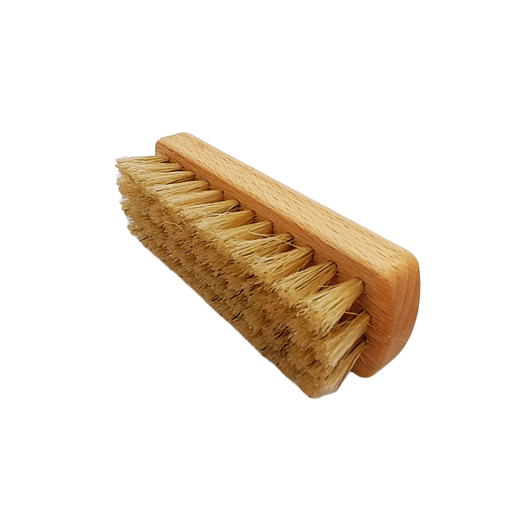 Szczotka jest wykonana z naturalnych surowców. Oprawka bukowa impregnowana naturalnym olejem, krótkie włosie ze szczeciny świńskiej. Idealna do czyszczenia dużych powierzchni jak kombinezony, krótkie włosie zapewnia mniej chlapania przy pracy.